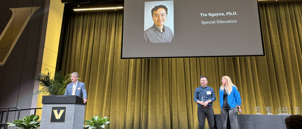 Dr. Tin Nguyen was awarded the Postdoctoral Excellence in Innovation Award; an award the graduate school describes: “…honors postdoctoral scholars who demonstrate exceptional creativity, ingenuity and forward-thinking mindsets in their research.”